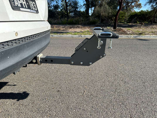 THIS HANDY GUIDE WILL SHOW YOU THE DIMENSIONS FOR OUR CAR MOUNT KIT. IF YOU REQUIRE AN EXTRA LONG INSERT BAR TO CLEAR YOUR CARS REAR MOUNTED TYRE OR SIMILAR, YOU CAN PURCHASE FOR AN ADDITIONAL $70.
