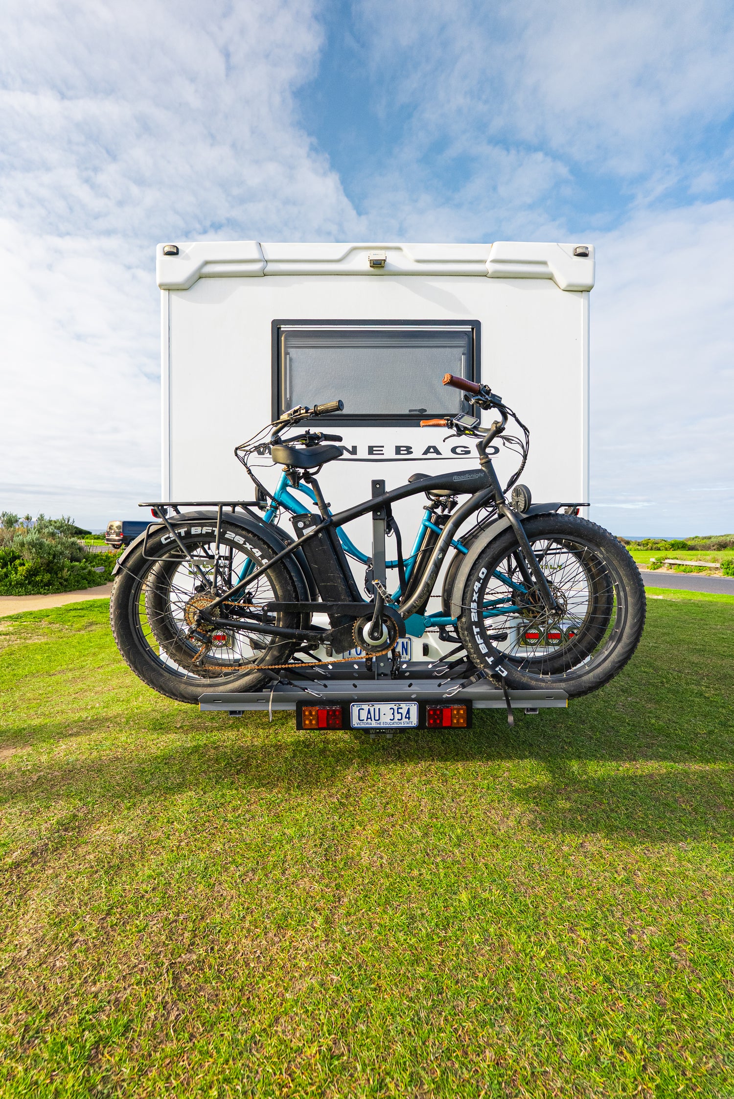 This heavy duty motorhome specific bike rack is designed for the transport of 2 E-Bikes on the rear of your motorhome. Travel and explore with ease. These are the features: